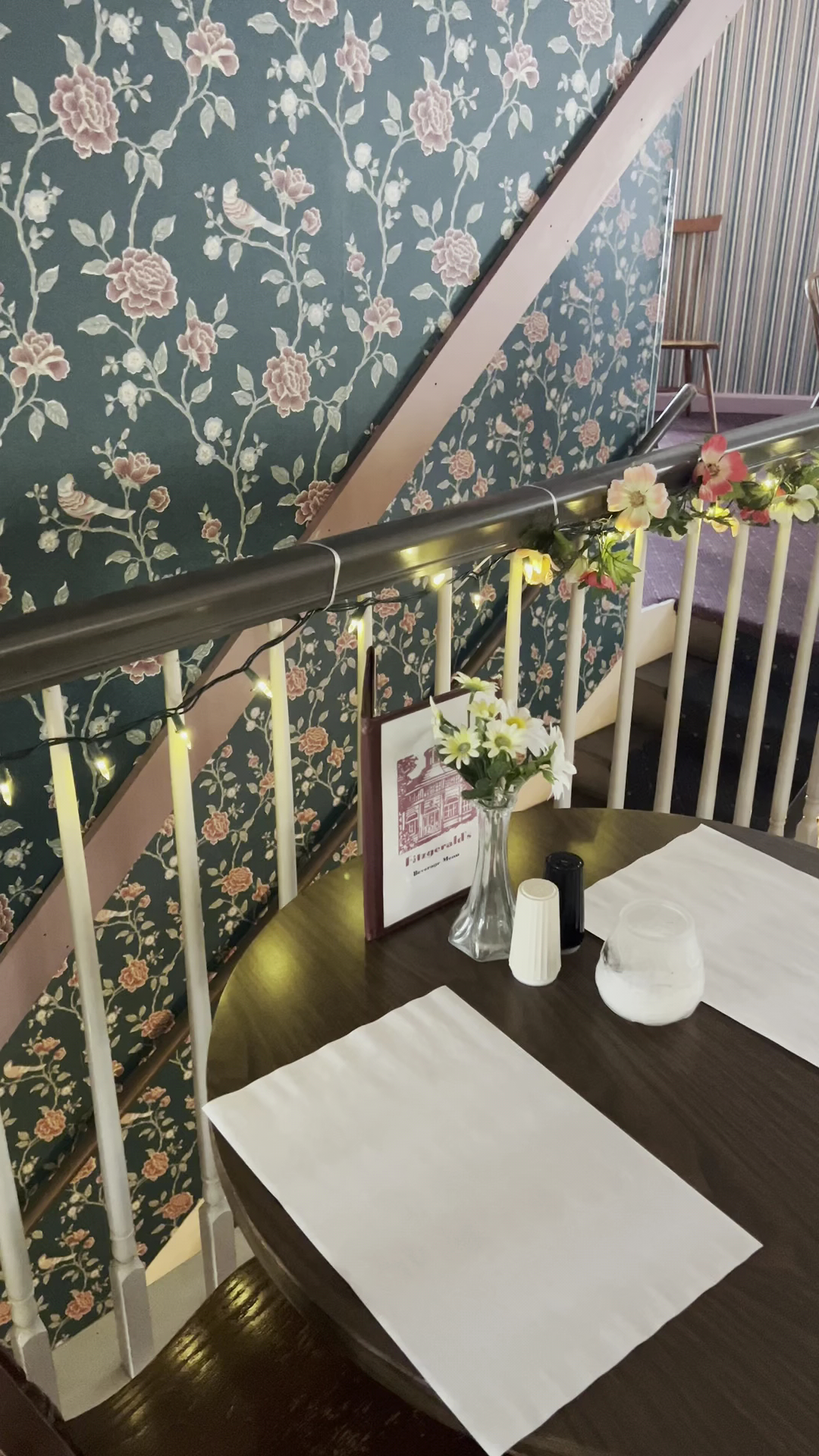 The restaurant is in an old house in town. You can eat upstairs or downstairs. We tried upstairs and it wasn't bad, but remember it's an older house. Next time we're going to eat downstairs.