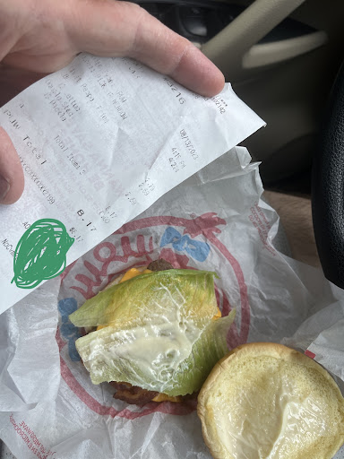 Read moreI will not return to this Wendy's! At the pay window, the employee had to go to another area to get me a receipt, after I asked for one because he did not offer! Then at the pickup window I noticed my receipt said sandwich with cheese, I did not ask for cheese, guess for some reason that's my fault because I didn't say no cheese. No biggie. Ordered no onion,, no tomatoes! Got my sandwich, I smelled onion but thought coulda been from inside the window and went on my way. Go park to eat.. my burger has no cheese, GOOD! BUT it had onion, ketchup and pickles. I ordered no onion and no tomato, which means it should've had ketchup mustard pickle mayo and lettuce! So I drive back over there, park and go in. Luckily still have my receipt so he knows what I want, had to ask for a new fry bc others were cold at this point! I leave again, thankfully have it correct, then realize they never gave me my drink at the pickup window. I said forget it. Oh yeah, I ordered cheese sauce for my fries also and that was like water. Didn't eat half the...