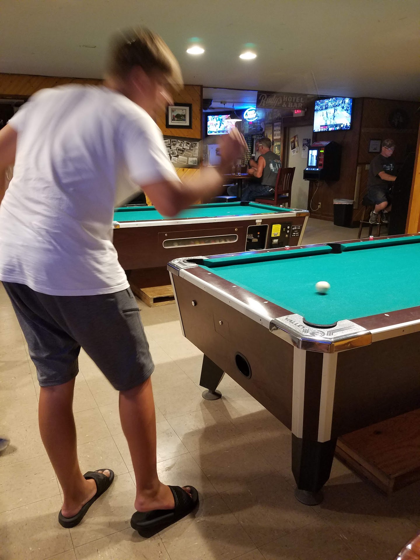 Very Friendly staff & they get to know your name if you stay a while. Great prices. Modern juke box, bar games, pool tables, video slot machines/. Home town feel. Locals welcome those passing thru. Has a different set up for the hotel portion. Really works for large groups. ( Not for those who need lots...