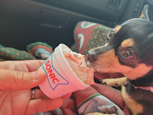 Read moreTook unusually long for a sonic for someone to even answer after hitting the button, like 3-4 mins. Then when someone did answer they did NOT sound happy at all. Food was okay, tots weren't fresh, that's for sure. Then I had to wait another 3-4 mins after pushing the button again, to ask for the receipt I didnt get with my order. I would say all in all I spent about 12 minutes are just to get us medium order of tots and a large ocean water. I've pretty much consistently had problems with this location in George West, not sure what is going on behind...