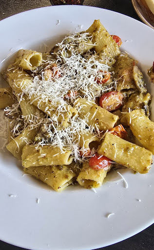 Read moreEverything was just ok. 7-10-21 dinner 5:30pm. My previous time here was for lunch. I am a critic of restaurants, their atmosphere, food quality, service and wait staff. Exterior building appearance is very appealing. Customer Parking was wide open with 1 car in the parking lot and he was pulling out. Greeted immediately upon entering by the hostess and seat promptly. The waitress “Elizabeth”;came over within minutes and was pleasant while taking our drink order. The wait staff all seem to be very young and inexperienced. Our waitress struggled to explain all the dishes. I’m thinking the chef does not meet up with the wait staff before dinner hour to hand out que cards to the staff or explain the nightly specials or offer wine accompaniments. While waiting for drinks I was given time to review the interior. The interior is industrial with an overall cold feeling. Although labeled as a pizza place it offers supposably higher end pasta dishes. The bar area is nice and appropriate leaving the dining area with a feel more of a deli or brewery feel. If your going for pizza, this is the place but if your coming for high end pasta dishes in a comfortable Italian dinner setting this it is not. The setting doesn’t fit fine dining Italian pasta dishes. Unfortunately we came for the pasta dishes. I had the Brucatini Mussel/ Salmon pasta dish and my wife had the Penne Gamberetti. Both dishes arrived just warm. My dish presentation was not appealing to the eye. It actually looked like it was scooped out of a big pot. There were 4-5 of the 100 big cherry type tomatoes partially stewed. Roasted tomatoes would have been nice. There were 4 small mussels along 1 side and the dish was dry. Mussels are fairly inexpensive compared to most seafood so the stingy amount was disappointing and lacking of flavor. Maybe placing them around the entire dish might have helped the appeal of the overall dish. The Salmon was I’m guessing approximately 2 tablespoons crumbled throughout the pasta. The amount of Salmon was disappointing. The serving size was small or approximately 1/3 of an average Olive Garden dish. Yet the price was actually higher than almost all Olive Garden dishes. A feeling that pricing structure is based on the lack of customers rather than the quality of the dishes was evident. My wife’s dish, the Penne Gamberetti had much better presentation. Her main complaint was the dish being dry or lack of sauce. The flavors were there but with the temperature and dryness made the dis disappointing. The $76 will not be spent at this location...