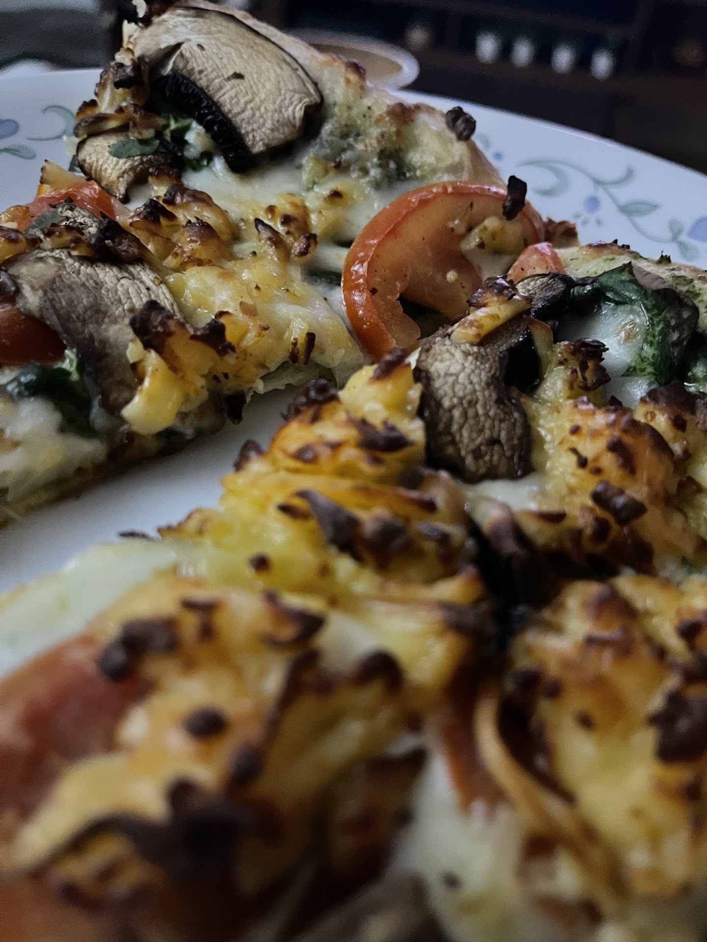 I ordered slice of pepperoni pizza. The crust was perfectly crisp on the outside, while remaining fluffy and tender on the inside. The patio area created a relaxed and inviting atmosphere, providing the perfect setting for enjoying great food and drinks. Plus we got to sit with our dog which was plus point.