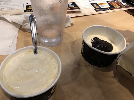 Our server came back with two take-out bowls of ice cream. My wife's was nice and full. Mine was half that. We laughed it off, because it was just one more thing in an already eyebrow-raising experience (to say the least).