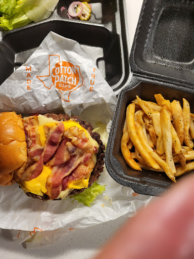 However, the failure was, the three cheese burger (that JP didn't want last night, but would take for lunch the next day) we were supposed to take home. 🚩But the cook left the "parchment paper" between the cheese and it was melted between the other two, placed on the meat, then, the bacon was placed on top of the three cheeses, and brought to our table. We didn't even notice it at first, nor did Emily. I was so00000 SHOCKED, I forgot to capture it on my camera. It's N🚫T normal to take pictures of your food! Neither do I enjoy negative reviews; and I hope Cotton Patch doesn't lose customer's. But this was totally unacceptable, and unbelievable.