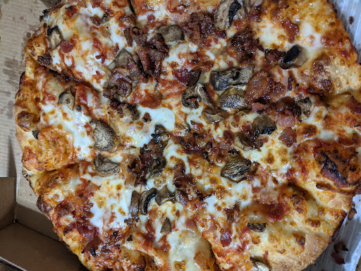 Read moreGreat ordering system on their website; even allows you to choose to put ingredients on just half the pizza and which half. So if you want just want pepperoni and peppers on the left side and meatball and extra cheese on the right side, but mushrooms all over, you can do it. You may have to turn the box to get the sides to correspond. 8-} It was fun to watch the graphics on the website as your order went through each step from "Order in" to "Preparing" on through "Out for Delivery." It actually show a little guy doing each step. The last step, he takes your order off the counter and turns to off screen and hands the order to an unseen driver. The driver was neatly dressed and courteous. Since I had already paid on line, I just had to sign a credit receipt and got a copy. Tip the driver and he was off. Took less than a minute. Domino's Pizza has always been good. We got 2 medium pizzas this time. They were a little weird in that they were cut in squares instead of the traditional wedges. Took some getting used to, but the flavor was still there. BTW, Thin crust pizza can stick to the cardboard if you don't slide something...