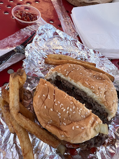 Read moreThis was my 2nd time eating at Five Guys. The first time was years ago in a totally different city. But as far as this particular location (Georgetown) I will say the customer service was stellar. My order was shy of $20 and that was just for a plain and dry Grilled cheese with a patty and a large Cajun fry. Don't judge me, I'm really plain and simple when it comes to burgers. I honestly hated the fries and threw them into the disposal. They did give me a lot of fries and I mean alot. I got what I paid for with the fries. The fries were overly seasoned and a tad bit spicy. I just couldn't find a liking to them. The burger was good but not worth the amount that I paid. The burger was about the size of a McDonald's cheeseburger. I will not ever eat at another Five Guys again simply because I can make my own food (I was just being lazy today) or I can go elsewhere and get the full benefit of the amount I paid. Again, the customer service was good and everyone seemed nice. The manger was doing an interview I believe when I was there but he took time to acknowledge my presence. Oh, the restaurant was pretty clean. I did end up waiting about 5 mins for my order since they were waiting on the fries to be completed. I had placed this order to go via online, so I'm glad I didn't wait...