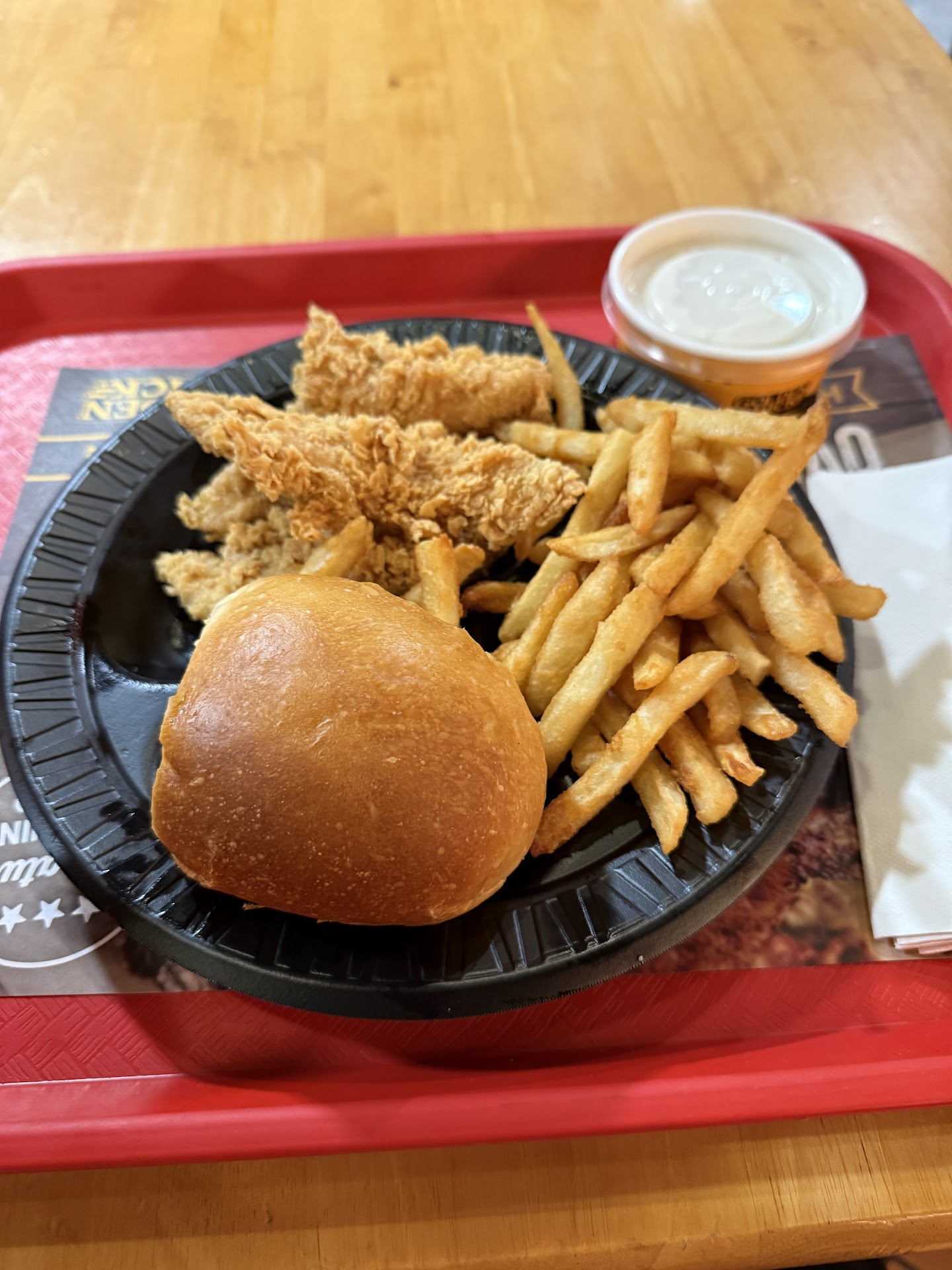 Read moreCouldn't tell you how the food was because I left without ordering. Nobody was in line ahead of us, man who I would assume was acting manager at least said he'd be right with us. No problem so far. Guy who ordered in drive through came inside, because he basically ordered a combo that didn't exist. He was mad because he explicitly detailed what he wanted, and apparently the person on drive through didn't understand or just wasn't paying attention. Reason I know all of this is because the person I'm calling manager was very dutifully attending to this customer, while me and my coworker stood, apparently invisible, for a good while. I could see there was no roast chicken ready, so I asked another employee if they could prepare a 2 piece roast chicken, since that's what I was going to order. The idea being, I've already waited 10-15 minutes, only person in line, maybe I wouldn't have to then wait even longer for them to get around to make my food. The employee just said 'just wait and then you can order it' I don't know if the employees here are completely apathetic, or simply incompetent but I guess they'll just hire anybody. Don't go here if you value your time, which is laughably poor for a fast food...