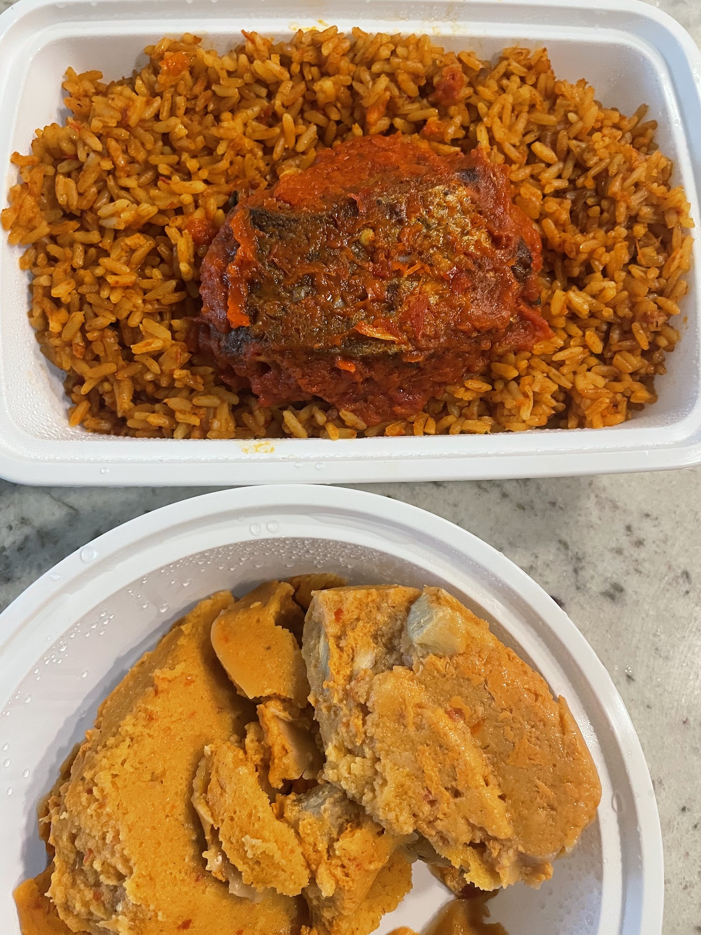 Ok so I’ll say this the customer services is amazing before I ordered I called to be clear on what the dishes came with and such and was treated very nice over the phone the food came in a timely manner and was packaged securely with minimal oil spill that’s expected because of the dish I got! The food was very tasty and hot, came in decent sized portions was enough for me to eat twice that day and some this morning! My one and only complaint would be for the protein there could have been more meat present in the dishes (pls don’t be stingy with the meat lol) however the restaurant forgot a side of rice and she personally had it delivered at no extra cost to me also in a timely matter YOU JUST CANT BEAT THAT TYPE OF SERVICE I was very impressed and I will be coming back and referring others to try this place i spent around 60 buck total for the meal plus delivery I got two portions of jollof rice one with fish the other one with turkey and aymase...