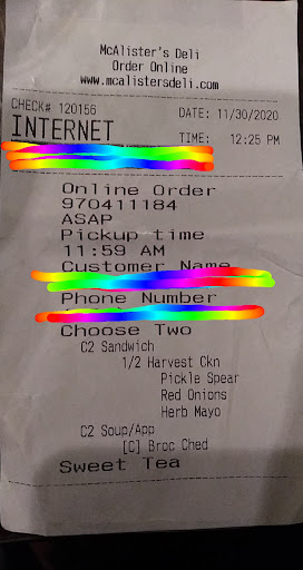 Read moreTonight we ordered food and it was said to be ready at 6:24pm. My fiancé arrived shortly after that and was informed the food is not ready and that they only have one person in back making food.. but he saw 4 people standing around the counter area. 30 minutes pass and he still does not have our order, so I call to figure out what is going on. Bryson informs me that they again only have one sandwich maker, and asks if I want to speak to management. This is where in my mind (previous manager myself) I would think that MANAGEMENT would get up and go to the back to help the ONE sandwich maker process orders to keep customers happy, and not waiting 30+ minutes for a sandwich and salad. This is not the first time that this has happened at this location. It is very frustrating to order something and not receive it for almost an hour later. Other restaurants who are short staffed still manage to figure it out and get the food out in a timely manner. IHOP for one is very good about that and they are ALWAYS short staffed. Perhaps, just a thought, using the online ordering system is not working out so well for McAlister's considering ya'll always seem to be short staffed and not able to complete orders in the time period given. I understand being short staffed, but I also understand figuring out a solution that helps both the staff...