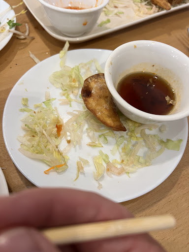 I'm not trying to be picky here but spring rolls usually have about an even spread of vegetables, noodles, and meat. Not all places use all the same vegetables but it's usually pretty evenly spread. Tonight, there were noodles, a sprig of cilantro - or something green, and some meat. It was mostly noodles and not worth the money.