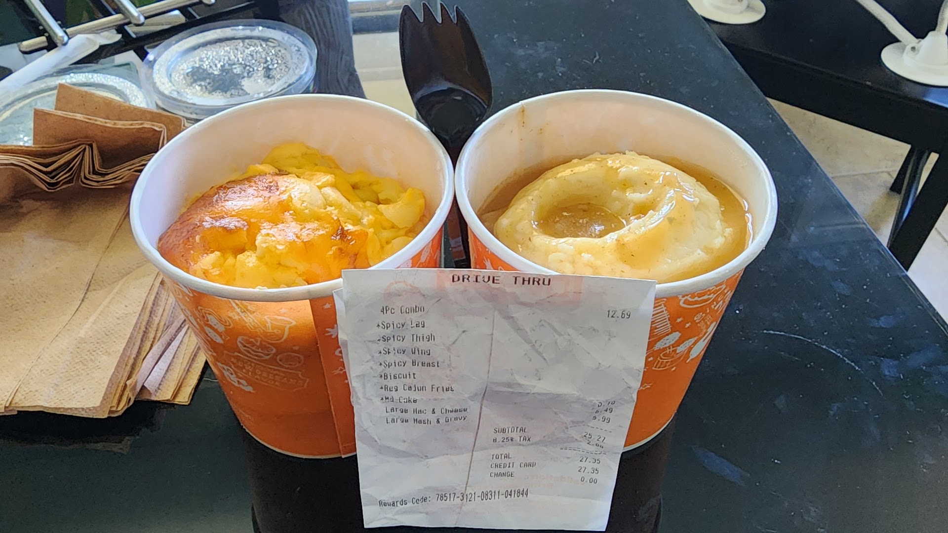 I like Popeyes for their chicken, chicken sandwich and mac n cheese only. My husband eats the flounder sandwich when in season. With that said, i ordered the 3pc chicken combo and when i tell you that the mac n cheese was disgusting, i tossed it after one spoonful. It literally tasted like it was made with dirty sink water. I get it may be the trapped steam that gives this flavor, but it was not tasteful whatsoever. I also dislike that the small/single size cup of mac n cheese was only half filled. Both meals were like this. I am used to receiving a full cup at other restaurants. When placing my order, the cashier (a Hispanic lady) was so hard to understand with her thick accent. She struggled to answer a question so i switched to Spanish to better ask my question (because, I too, am hispanic) and she just had a blank stare on her face and continued to reply in English. I was trying to make it a little easier for her but ok. As soon as I completed my order she just hit total and walked away to the back speaking Spanish. The manager on duty/shift leader had to cash me out. That was disrespectful. I may not return to this location if I have another bad experience (because I give places two chances before I ban it from my eat list). I hope management becomes aware of this and uses it...