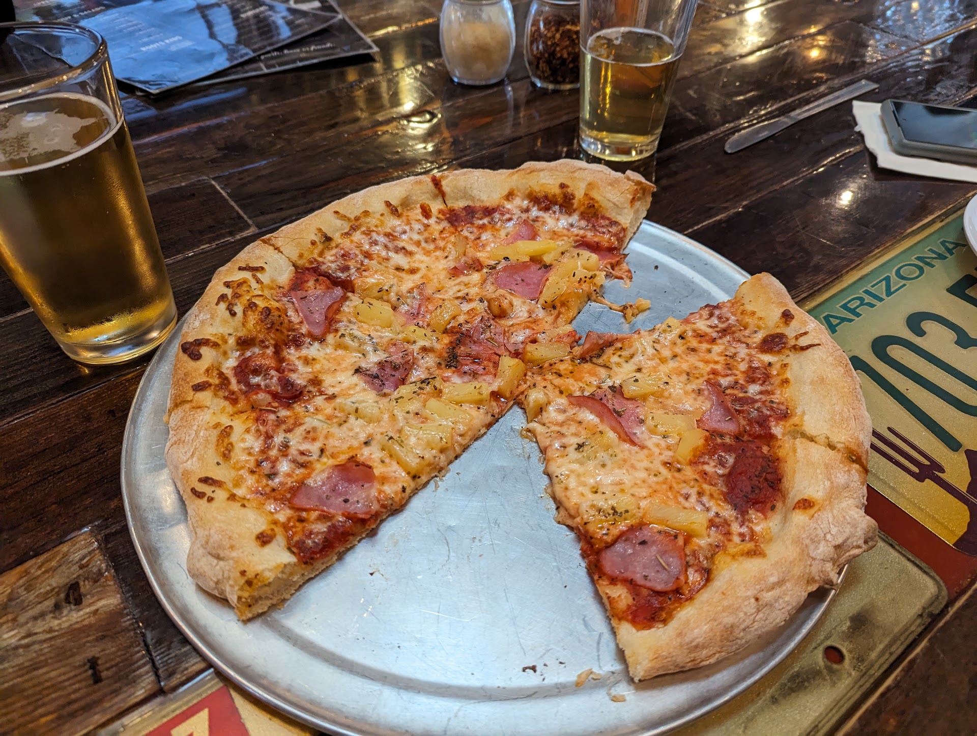 The place down the street is great for small gatherings as a purpose built pizza shop with average pizza and lots of beer on tap. Roots is great for groups small and large as a music venue with fantastic pizza and beer on tap.