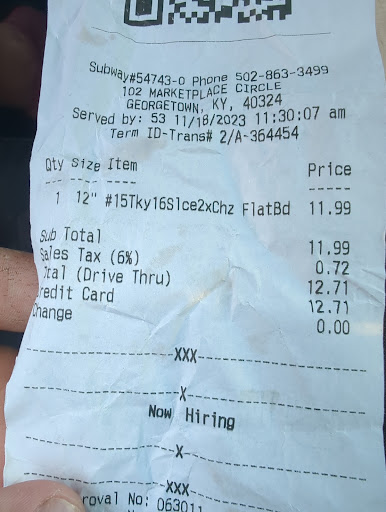 Read moreThis is by far the WORSE Subway I have ever been to. DO NOT GO TO THIS LOCATION EVER! My first visit had been a few years back. I never go to this one always to the one in Walmart. Any way the the first time, i ordered from the drive through and the sub was lacking everything. Never imagined I would get food poisoning for 3 days straight. Did not go there again until a few days ago. I thought maybe theres new management etc. Went into dining area instead of drive through. Seemed pretty clean. Ordered my sub went home and ate it. The very next day.....food poisioning. I ended up at the ER with stuff coming out both ends. Needless to say fool me once shame on you, fool me twice shame on me. There won't be a third time, i can...