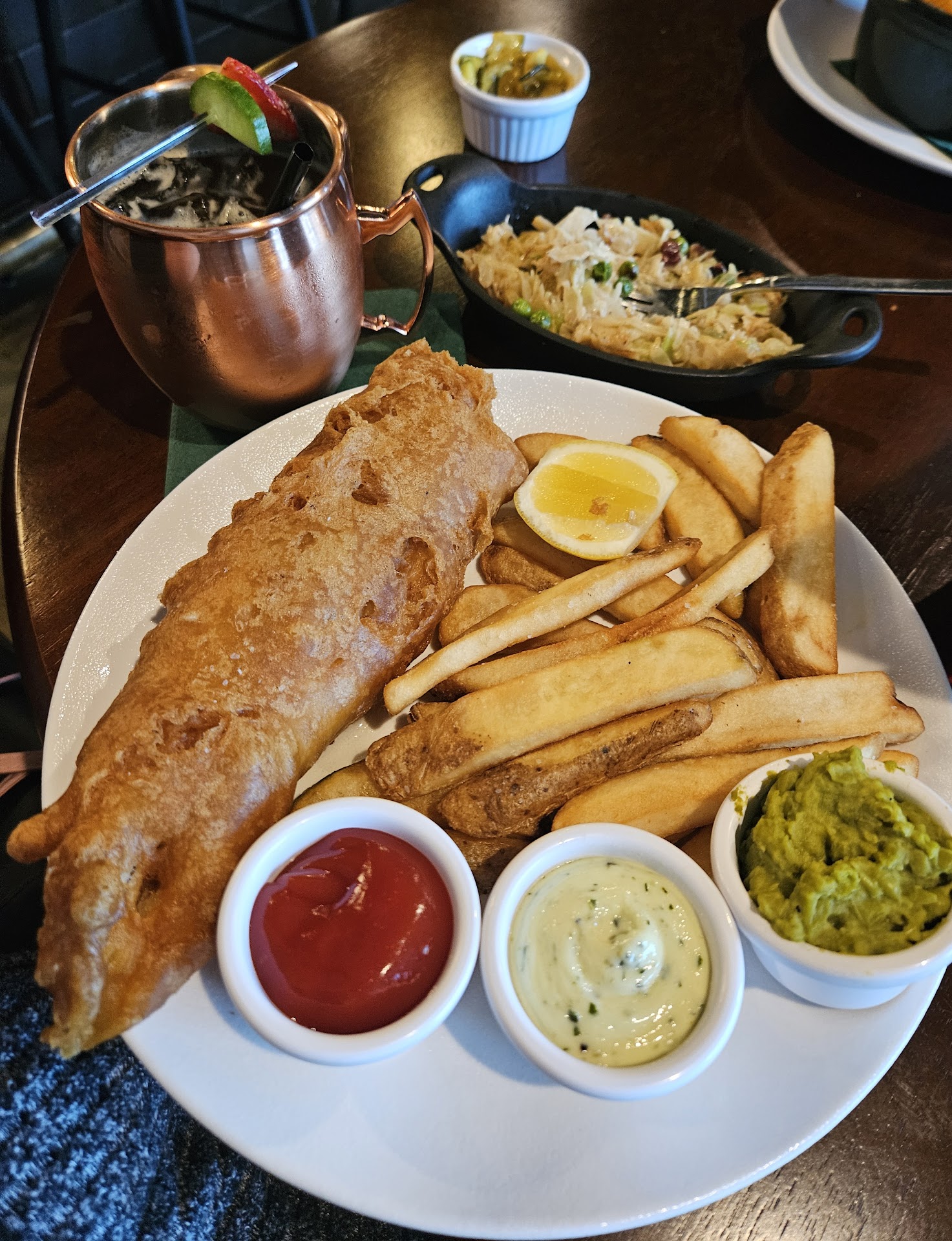 If I had to offer any constructive criticism, it would be what other people are saying about the lack of seasoning. The Shepherds Pie and the fish batter were a little under seasoned. I'm not a big fan of restaurants putting a lot of salt, pepper, or spicy stuff on things. If a customer wants more, we can just use the salt and pepper provided at the table instead of it being served too salty or too spicy..So, when I say it wasn't seasoned enough, I mean it was less than the minimal amount of any type of seasoning needed for that dish. However, because everything was cooked perfectly, the lack of seasoning was forgivable. We just salt and peppered it ourselves. I've never had Malt Vinegar, so I didn't know what it was when I saw it on our table. I read today that it goes well on the fish, so I'll try that next time too. I wish the server would have mentioned what it was and its purpose for us non British folk! Also, our table had a broken leg that wobbled a bit. Not a huge deal.