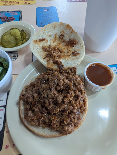 The chopped beef sandwich didn't taste smoked, nor did it even taste like beef. It also seemed to have lard or some other fat blended in to the point it was almost like paste. I tried dipping it in the sauce, but the sauce seemed to be the skimmings of beans with a couple of shakes of Frank's Hot Sauce added in. That added nothing more than additional wallpaper paste flavor finished a bit like a mild buffalo wing.