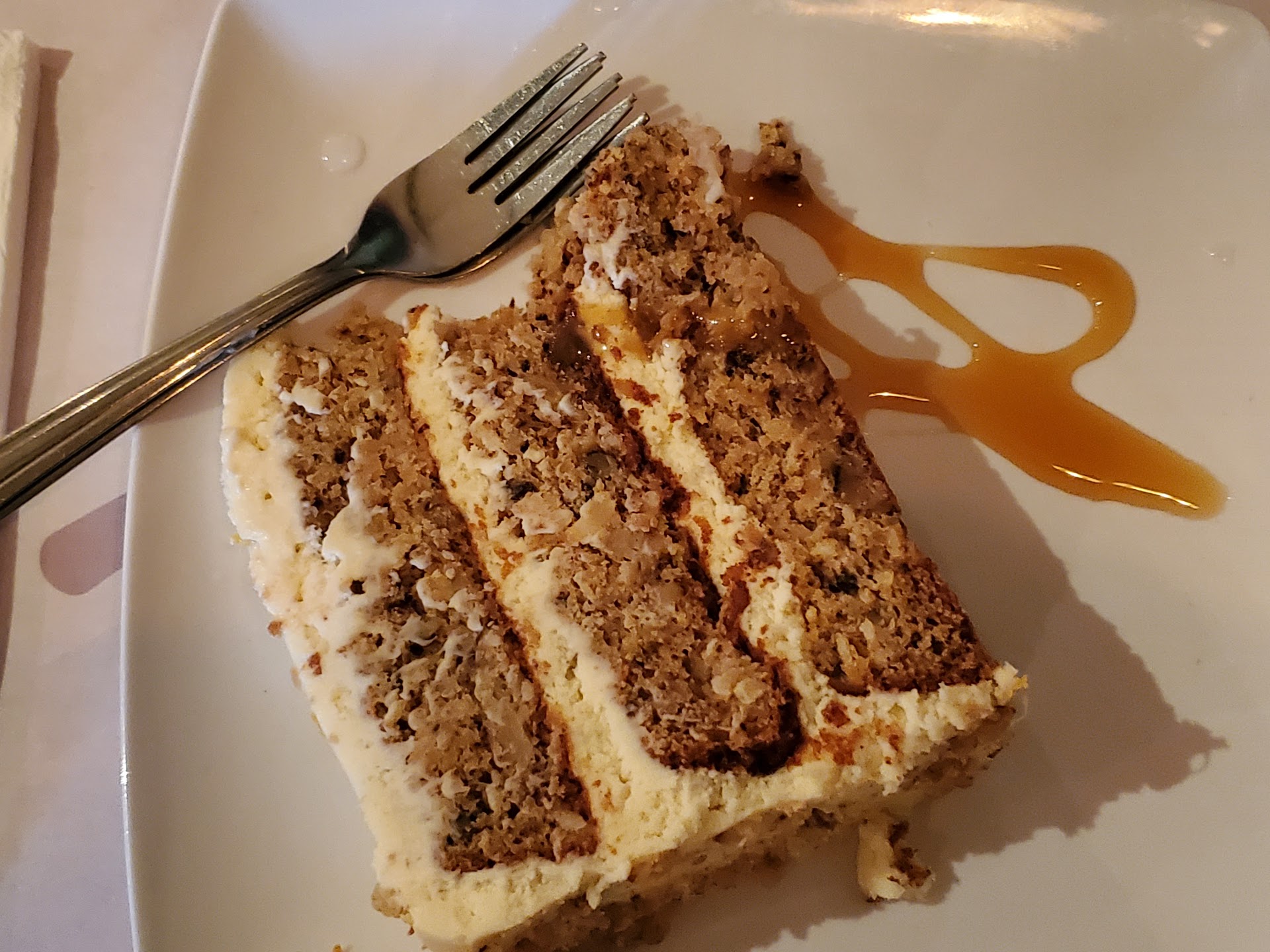ย ย ย Read moreThe theme of this review should be never judge a book by its cover. The outside of the place looks rather dated and very rustic, but stepping inside is like stepping into the past. The soft lullabi playing of beautiful Italian music, pictures on the walls of various locations and a simple yet elegant seating area. We decided this time to put our trust in the server instead of trying to pick for ourselves. Like a true food connoisseur, she effortlessly recommended the stuffed mushrooms for an appetizer. She returned shortly with our drinks and complimentary bread followed by our mushrooms. Let me just say, our mouths were watering while eating them and although we wished there were more, we were more than happy so far. I decided to jump the gun a bit and ask about desserts to which I was told, fear not, I will take care of yall with the desserts. We asked for her recommendations on an entrรฉe and decided to run with it. I got the spinach and chicken fettuccine and my wife got the veal parmasean. This was above and beyond our expectations. The fettuccine was covered with delicious tender chicken pieces and crunchy bits of bacon with perfectly cooked fettuccine and a sauce that was thick enough to quench the Alfredo craving while not being overwhelming. Her veal was just as she expected, extremely tender and very flavorful. For the first time eating out, she offered me NO sample of her meal, this was obviously HERS. The portion size of both were more than required meaning you had enough to enjoy later. When it came time to get dessert, she wasn't kidding, the selection was unique but their presentation was on point! We decided on the Italian cream cake and was more than delighted. It had the appearance of carrot cake along with the consistency yet coated with coconut. This cake was very moist and an absolute treat!