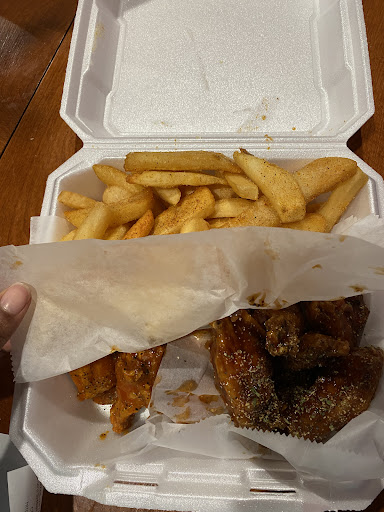 Read moreThis is my favorite wing spot! The wings are the perfect size and Iâve tried many flavors and all of the flavors Iâve tried are tasty. The owner and cashier (Taylor I think her name is) are extremely friendly. On this particular day I got ordered my wings half honey garlic and Hot with lemon pepper sprinkles and both flavors were delicious. The fries were different this day as well but that wasnât a problem for me because they were still crispy with just the right crunch. The drinks they have are peach, lemonade, fruit punch, sometimes grape, and various sodas. I tried this place for the first time a month or two ago and when I was ordering the cashier told me they had the best wings in town and she wasnât kidding. There is typically a 20+ minute wait but I never mind. Please keep this in mind when ordering because people are impatient lol. Thank you 4...