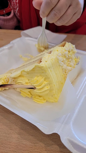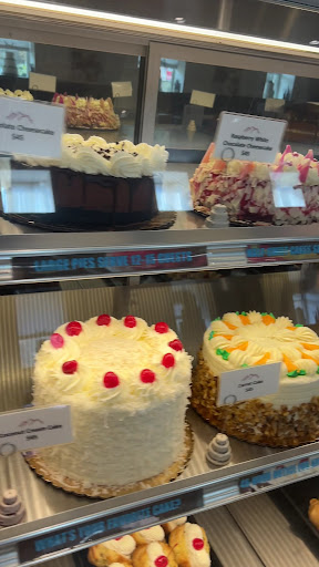 When you first walk in everything is beautifully laid out and everything looks Devine! However, once we were inside it was very hard to get service and the staffs attitude was poor. The guy helping us seemed annoyed with the couple of simple questions I had and simply ignored the compliment I gave. We ordered several different cake slices, cheesecake bars, peris brest, and a sticky bun. CAKES: The cakes all had a very very mild flavor. The oreo had 2 layers of chocolate cake and a vanilla in between. The chocolate cake was hardly chocolate tasting at all but the texture was nice. The chocolate cake in the oreo cake honestly tasted like a box cake mix but even those have more chocolate flavor...The buttercream they have is excellent. The lemon cake, same thing. It was almost like the cake was a simple vanilla and the buttcream that went along with it had a beautiful texture but you could hardly taste any lemon. The peanut butter cake was very dry and almost stale. But the buttercream was well flavored with a reeses flavor and had nice texture to it. We just ended up scraping the frosting off to use with pretzels later. CHEESECAKE: The oreo and chocolate Cheesecake were some of the best cheesecakes we have ever had! Very dense but creamy and well blended flavors throughout the Cheesecake bars. Very rich NY style with lovely crusts. We will definitely keep coming for those! PERIS BREST: The peris brest was just not good. First off, it should not be called a peris brest it is more of a giant filled cream puff. Every part of it was bad to me. The pâte à choux dough seems overworked because it was very very tough. The pastry cream inside was too thick and dense. The sliced strawberries were on their last leg and hardly ok to serve. The Whipped cream was over Whipped and had a lumpy and gross texture with no sweetness to it. We just threw it out after failing to find some type of redeeming quality about it. STICKY BUN Oh my goodness! I highly recommend buying like 12 of these because they are phenomenal! They have used what I believe to be a puff pastry type dough and was beautifully glazed and sticky. The chew factor on the sticky sweet outside was just what I was craving and will be getting more in the future!