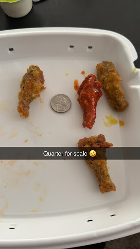 The only suggestions I have are: Make the wing size bigger, the wing sizes are extremely small when compared to Wing Stop or a local spot. Prices are already affordable, a couple dollars extra for medium size wings would be totally acceptable.
