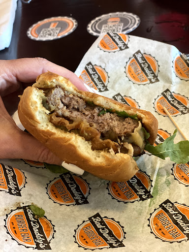 Read moreI'm always up for a good burger and had been wanting to visit Bad Daddy's for a while now. I finally had the chance to visit for a late lunch. The restaurant is clean and definitely has the "sports bar" vibe. Since I stopped by after the lunch rush, I had my choice of tables, which was nice; however it appeared that all of the vacant tables had not yet been wiped down after the previous patrons, and it took me a minute or two to find a table that was relatively clean. Fortunately, rolls of paper towels are provided at each table, so I was able to give it a good wipe down, but it was not a very good first impression. I did not have to wait long for my waitress to stop by and she continued to check on me periodically while I perused the menu. They off a good variety of Signature Burgers, but I opted to "build my own". I chose to go with a single 7oz paddy, medium rare, on the brioche bun, topped with just lettuce and a bit of onion. I like to keep it simple so I can actually taste the burger. I also had ketchup and their Big Daddy sauce on the side, along with a side of their hand cut fries. I did not have to wait long before my food arrived, which was also nice, especially since I was hungry. The 7oz paddy was a nice size and thicker than your normal "smash burger", which made me happy. I prefer thicker burgers to smash burgers. It was also cooked a perfect medium rare, with just the right amount of pink on the inside. However, it was an extremely juicy burger. And by "juicy", I mean greasy! Now, I know that to have a great burger, you need some fat, but I think they could have at least blotted up some of the grease before they brought the burger to the table - I mean, there were rolls of paper towels everywhere! Fortunately, the burger tasted great (once said grease had been blotted up by me). I was also glad that I had chosen the brioche bun, as it was thick enough to handle the burger's juicy-ness. I don't think a regular bun would have held up. The Big Daddy sauce was tasty as well. I mixed it with the ketchup and it was a nice addition to the burger. The fries, sadly, were awful! They looked good when they brought them out, but were quite limp and soggy (again, what's with the grease?); no crunch at all! I probably should have asked for a replacement, but I figured it wasn't worth the wait. There's a chance I might go back at some point, as the burger really was flavorful. But if I do, I'll ask them to blot my burger before bringing it out and I'll...