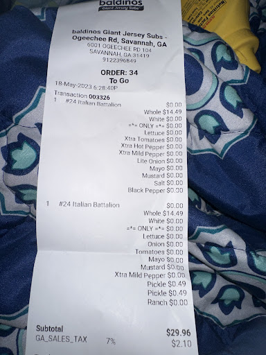 Ā Ā Ā Read moreThis week I had a fasting doctorās appointment at 1:30 in the afternoon, so of course I was starving when I got done. I had to get two shots and blood drawn, and it was hotter than the devilās toenails by the time I left. I stopped off at this Baldinoās on my way home to grab a nice cold lunch to take and sit by the pool. The two ladies working were so friendly, and worked hard to get orders ready in a timely manner. When my sandwich was being wrapped up, the bread broke causing the entire sandwich to fall apart. The nice lady remade my sandwich quickly for me, apologizing the whole time. The sandwich was perfectly delicious! I had the Italian, baldinoās way but with no tomato and added spicy mustard because they actually have it! I was...