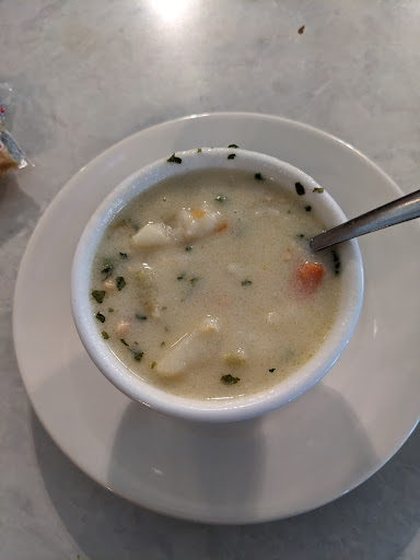 The fettuccine (kid's meal pasta) was dry and bland, but my son liked it after adding salt and pepper. The fried calamari was also good. My mother in law's salad had wilted greens. Her "gumbo" (red broth, white fish soup with veggies) arrived late. They replaced it with clam chowder that did not look right either. We had to send back several items (lemonade with weird taste, incorrect fish, undercooked whitefish, questionable gumbo and clam chowder soups, bland shrimp, fish and chicken tenders) and ended up cancelling two entrees off the full order, after I tasted a dirty sweet potato.