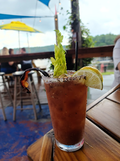 Small Lake Blue Ridge restaurant. The views of Lake Blue Ridge are great and it could be a great place to eat if the service were better. There is no interior seating at the restaurant...part of the eating area is covered however, and there is also an uncovered deck. We arrived around 8:15 (they close at 9) and right off the bat, our waitress acted as if we were arriving at 8:45...she was clearly irritated we were coming that late. Here's a tip, if you want to be off work at 8:15, go work somewhere that closes at 8! Our drinks were empty for about 10 minutes straight at one point and I was finally so parched I flagged her down to bring us drinks. Not like she couldn't see us...the entire covered place can't be more than 30-35 feet wide (everyone was seated under the covered part as it was pouring rain). The food was average bar food, nothing great but not that bad either...quesadillas were the best thing we had (only had 2 appetizers)...nachos were suspect. The menu is limited, which is fine, but this is not somewhere you are going to come back to because the food is to die for...because it's not. You come here for the view and that's about it. I'm giving them the benefit of the doubt and giving them 2.5 stars...if it weren't for the view, this would be a solid 1 star. If the service improved and the food quality was increased to decent bar food, I would probably give it a 3.5 star. But for now, it is a solid 2.5. Prices are average for what you get,...