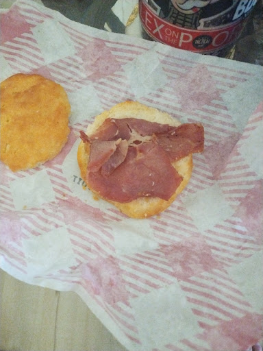 Read moreWent for breakfast it’s been a while since I’ve been to a bojangles and i remember them being pretty good but I was super disappointed. Can’t order most of the things listed on their menu during breakfast hours. I ended up getting a no berry sausage biscuit meal which is posted at $5.79. That is NOT what I was charged. I upgraded to a large tea and my check was almost $10. Tell me how it almost doubles?? Turns out they don’t have the meal priced to match the advertised and then charged an extra $1.70 just for the tea but Kay…. Then the girl at the window asked if I wanted mustard I told her no but I’d like some ranch for the tots and apparently that’s an extra 52 cent to get any sauce at all. Like I’m sorry you’re serving fries and tots and not even offering one sauce. Like I get for extra sauces but not even one? Cool. So finally get to actually trying the food and it was extremely lackluster. Idk what has happened to their biscuits but this one was absolutely terrible. Last time I had a no berry biscuit it was great. Crispy and buttery. This one was chalky but drowned in icing with barely warm sausage. Lest he...