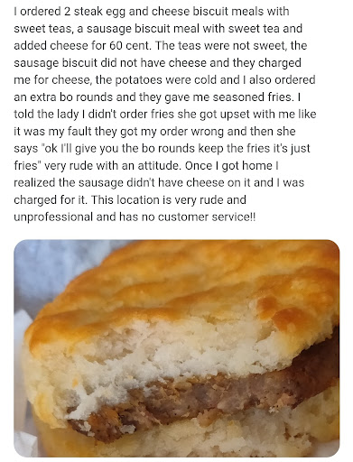(Review in late 2020) The food is good when you can get it in a timely manner. I go through their drive thru almost every day around 8 to 8:15am. At least 3 times a week, I have to pull forward to wait "3 minutes" for bo'rounds, which usually turns into 5-6 minutes. Today, they told me the bo'rounds would be "3 minutes" but offered grits or fries. I was in a hurry so I opted for fries. THEY TOLD ME TO PULL UP AND WAIT. If you're offering a substitute, why would you not have that ready?!?!?! The part of this that makes me so angry is they don't tell you there is a wait on your food until they have taken your money. When you ask for a refund, you have to go inside and it will take 7 to 10 days to be put back on your account. If I'm having to park and go inside to go through the refund process, I might as well wait on my food.