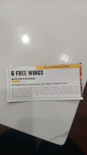 Ā Ā Ā Read moreNo doubt this location has 1 star reviews š I had a very disappointing experience at this location. I placed a to-go order for 6 bone-in wings and wedges. The cashier was polite at first but gave me an incomplete receipt (the paper ran out), so I couldnāt see my claim number or scan for points on my app. When I asked for the receipt again, the employees spent several minutes looking for it but said it was not in the system.