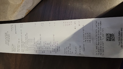 Ā Ā Ā Read moreWe walked in around 8:45 pm. The bar was pretty full and there was about four tables seated. The hostess asked if we wanted to sit at the bar, and we said no. She sat us at a high top next to the bar and said we could order through the QR code on the table or wait for a server. We waited about ten minutes and no one stopped by, so we ordered through the QR code. Shortly after that, a server stopped by and asked if we had been helped. We said no, but that we ordered through the code and would like some waters. We asked how the code worked and if the order went through since we didn't pay yet. He said each code was connected to the table and we could pay with him afterwards. All we ordered was one appetizer sample platter. After a few minutes, we saw our server walking around with a sample platter, but he didn't give it to anyone and took it back to the kitchen. We saw him walking around with it a couple more times, but still taking it back to the kitchen every time. After thirty minutes, my friend saw him standing by the kitchen, so she said she thought it was ours that he had been carrying. He asked what sauce we had on the wings, then went into the kitchen. He never came back to our table or brought us food. After another five minutes, we asked the hostess for a manager. She went in the kitchen, then came out and went back up front. No manager ever came, so we stopped someone another five minutes later asking for a manager. He said he was one of them. We told him we had been waiting over 45 minutes at this point, so he went in the kitchen and brought us our food after about five minutes. He didn't give a good explanation, just that they were one of the first stores with the QR codes and because of that, they had less wait staff. I don't know how many waiters were there, but we saw about ten employees walking around, not including kitchen staff. We ate the food, which was good, but it wasn't hot like they just made it. We waited to see the manager again and asked to be comped since he didn't offer us anything when he was helping us. He graciously comped the appetizer. The "server" we had only stopped by our table once in the beginning and then asked us if we needed anything after the manager brought our food. He walked by us numerous times. He also had his pants falling down so we could see his tighty whities. Very inappropriate and very surprising he was getting away with it. The only reason I give it two stars is because the manager was nice and the food was...