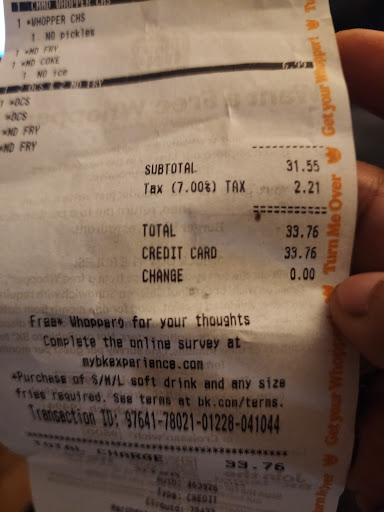Read moreIf I could give this Burger King a zero I would. I went through the drive thru and was given my card and food back. I was waiting on my receipt because I use my receipts for tax purposes. The young lady never came back to the window and just stood there talking another order. I signaled the manager but he called another girl over and I told her I been waiting on my receipt then she went and got the manager and the manager said that they were out of receipt paper. I asked him why didn’t the young lady say that instead of having me looking at her for 5 minutes straight. His reply was that he didn’t know! Needless to say I drove off. I’m not mad about the receipt because my accountant can just pull it from my bank transactions. What I’m mad about is the lack of quality customer service I was given. Why would you ignore a customer at the window? Why couldn’t the manager give me a response to his employee actions? If you want to stay positive and have a good morning and vibe with good people don’t stop for breakfast at this Burger King. If the breakfast crew is this bad, there’s no telling what the lunch and dinner crew is like. Feel free to just go to the Taco Bell or Hardee’s instead. This Burger King needs to shut down and have a...