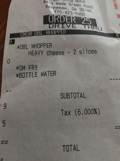 Read moreToday, I used my t mobile Tuesday code to get my free impossible whopper with my family. So I had ordered mine and then used the code from my dads phone to order it(my dad is in the car), then the lady at the cashier spoke with a aggressive tone at me said I can only order one. I had to then had to clarify that the order was for my dad. She still had a aggressive tone like she was mad at me for some reason(even after the nonsense from her,she still got my dad the burger).Restaurants or wherever, should always treat their customers with good hostility even when they feel agitated. Fyi, I didn’t even raise my voice or show any annoyed/agitated emotion the whole time, I was just speaking in a regular tone. I always loved this place because there was an older lady at the cashier who was always nice until this lady came in for the morning shift I think. Thanks to this lady, my whole day feels ruined and the manager for this place please tell your staff how to treat your customers.