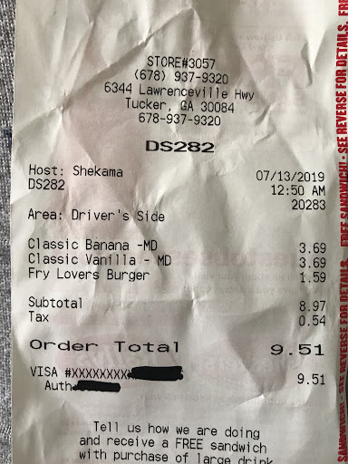 Read moreThey were mean in an ill-mannered way. Honestly. $40+ order. We had 4 people in the car, one was a mother of the church. My son told them we had more than one order, so we needed separate bags because we were going to different places. Evidently, that was problematic. Before my son tried giving the order, the guy was showing signs of frustration like we were making him work by asking for separate bags. When my son tried giving the orders, he kept grunting and cutting him off and disappearing from the intercom. This he did until finally he just got off and someone else came. She said he told her we kept changing the order, which wasn't true, and mother explained very politely that she thinks it was the bagging that he didn't want to do so everything can just go into the same bag and we will separate it. None of us were rude to them. I can't prove it, but it's true. We were told to pull to the side by the frustrated man we ordered from first. ...and they just left us sitting there. Just sitting. After 10 minutes or so, my son's friend got out to see what the wait was. They had our food just bagged and sitting in the drive-thru window. No one tried to bring it to us or let us know it was ready. Of course, that made us all frustrated. My son's friend left the bag because he was angry and he left the window in disbelief. When my son came behind him to get the bag, the employee told my son to tell his friend that he needs to fix his...