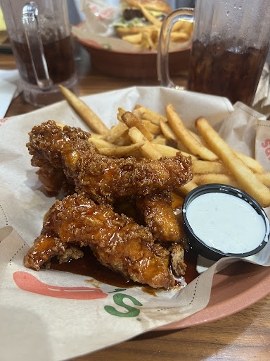 Just not a good experience at all . Waited over 20 minutes Before anyone came over to take our drink order or even say hi. At the same time we ordered our drinks we ordered chips and dip. The waitress said oh that’s easy. I can go grab them as soon as I put in your order and bring them right back, but she never ever did.. We waited and waited. Finally, the manager swung by and put them on our table. We didn’t know he was the manager until much later. As you can see from the photos, we got crumbs instead of chips. There were no more than three or four unbroken chips on the whole tray. It was impossible to take those tiny pieces of chips and dip them in the salsa because your fingers would end up in the salsa instead of just the chip. We asked the waitress for more chips instead of the crumbs She said she would bring them. We waited forever for the order to come out. My husband ordered fajitas, and I ordered chicken crispers sauced in honey chipotle. When the waitress finally brought the food out, my husband did not receive any tortillas for his fajitas and the waitress said to me “ Oh, they didn’t sauce it (referring to the chicken crispers), but they threw an extra chicken finger on there” as if that made it all OK. She knew the order wasn’t correct, but still brought it out of the kitchen to the table, so I don’t understand why any waitress would do that. I asked her if I could still have the chicken fingers sauced. I also noticed that she did not give me the mac & cheese that came with the dinner. She immediately picked up my plate and brought it back out just a few minutes later which begs the question why the waitress did not ask them to sauce the tenders before she brought them out. This time there was sauce on the chicken tenders, but there still was no mac & cheese. I mentioned it to her and she said “yeah I know they haven’t made it yet.” At this point we did not even bother to mention the missing tortillas for the Fajitas. Later when she brought the mac & cheese the noodles were swimming in liquid cheese. The cheese was not creamy. There was no thickness at all to the cheese; it was like water - see pic. It also did not smell good at all. I did not even take one bite. When we were almost done with dinner, she brought the replacement chips🙄🙄. We waited forever for her to come back over so we could ask for one to go box . Then the same guy who originally brought the tray full of crumbs for chips asked if we were waiting on boxes, and we then realized he was the manager. 🙄 The waitress saw him at our table and came running over. ...