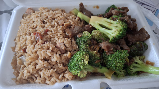 Out of all of the local Chinese restaurants that I've tried, I like their rice the best. It is fluffy and not so dry that it almost gets stuck in your throat. It also has more flavor than the other ones I've tried. I ordered the beef and broccoli combo with pork fried rice with no peas or carrots. The beef and broccoli didn't have a lot of flavor, but maybe it would have if I had asked for extra brown sauce. The container isn't the big one, it's the regular sized one for a combo plate, which came with a veggie spring roll. I actually liked the spring roll, even if it had no meat. I could taste the ginger in it, and it had a little bit of heat to it. The lady up front wasn't so friendly and welcoming, but she also wasn't rude. Next time, I'm planning on trying another meat entree with the fried rice. I paid $2.50 extra for pork fried rice. So, my total was $11.99+2.50+8% tax=$15.65 for a beef and broccoli combo with pork fried rice and a...