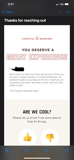 In response to your reply, I went through the app and noted my concerns but just like customer service and your reply, it falls on death ears. I was offered a free drink. I don’t drink sodas. I can afford to pay for my own food but you guys need to actually address concerns from customers not ignore them. Thanks for your...