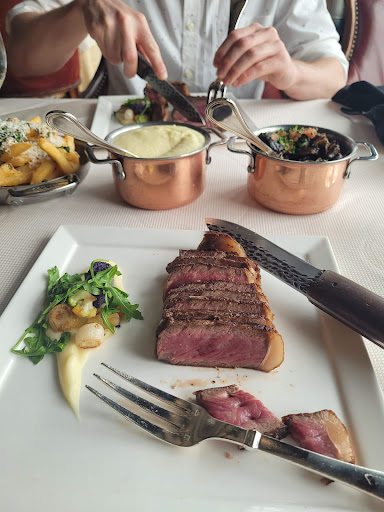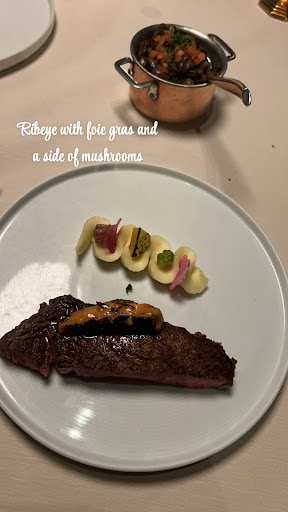 Read moreA beautiful venue with good service, but I was a bit underwhelmed by the food. The plating of the wedge salad was untraditional with the half-head of lettuce being used as a vat for blue cheese. It was good though! I chose the bone-in ribeye over the filet but wish I hadn't. It was thinner than I expected for the price and a tad overcooked. I added GA shrimp which were tiny, barely seasoned, not grilled and bland. For sides, the mushrooms were very good (favorite part of the entire meal) but the truffle fries were way too salty. Wine by the glass options are...