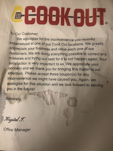 By that time I threw my car in park and requested to speak to a manager. She asked that a manager come to the window but I’m assuming that he was helping out with the food because it had took four more people to order before he came.