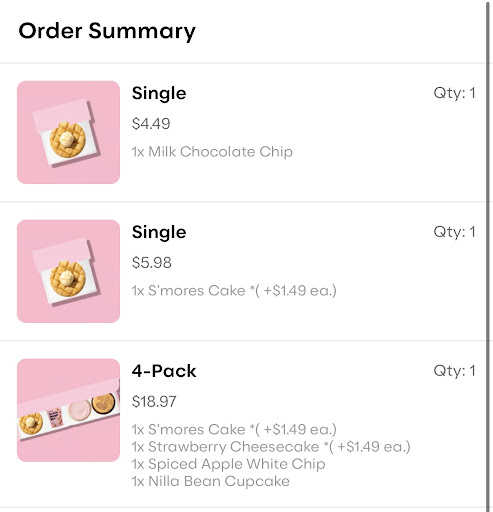 Read morePlaced a mobile order at 6PM on Saturday, order below, and once we arrived at 6:30 the order wasnât made and we were told that the entire order wasnât available and out of stock. And we were told to switch all of them to sugar cookies or waffle cookies, and once we asked about getting the refund for the price difference we were only given 1.25$ for the difference in price. On top of waiting 10-15 for us to even be asked about our order. I donât understand how the order wasnât made a priority and made before we arrived, and how if everything was out of stock, we werenât notified or refunded the amount we paid for everything. Now youâre telling me, that the most popular kind of cookie a chocolate chip cookie is out of stock at 6pm on a Saturday when the store is open until 10pm? Youâre absolutely kidding me.
