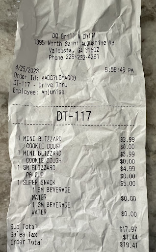 Upon trying the blizzards, I found that the ice cream itself was decent, but the royal fudge blizzard was missing the fudge center, and only the top half was blended. The bottom half was pure vanilla ice cream. The cookie dough blizzard was also missing the chocolate sauce, and only half of it was blended.