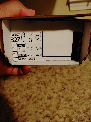 Read moreWorst dominos to buy pizza from when it comes to delivery. I was ask for garlic sauce get charged for it and never get it when they deliver. Today I had enough. Pizza got here no sauce again. Driver asked did I want him to bring it back I said no. I live 10 minutes away. It took him 22 minutes to get here. So that means that I would have to wait an additional 22 minutes. I called the store and asked to be refunded the money for the sauce, they put the driver on the phone and he said no. Offered to credit it to my account which has been supposedly done 6 other times however every time I order they forget the garlic sauce that I paid for with the order and the ones that I have credited on the account. So I told him I want the money back not the sauce. He said he would have to cancel the entire transaction. I said do so and recharge it without the sauce. He wouldnât do it. He said the manager said no. I asked if I go up there will I get the money back he said no, we will give me the sauce. To top it off the manager would not get on the phone to rectify the situation or talk to me. I was told he was too busy. About a 1 year 1/2. This manager cussed me out so bad because I asked how long would I have to wait for an order that was over 45 minutes late. Instead of answering the question he got loud and I got loud back and he cussed me out so bad that my husband had to come to the store and put him in his place. I called corporate and nothing was done. I didnât even get a call back. At this point I will not be ordering from here. I rather eat nasty Papa Johnâs then continuing to pardon at this location. Simple read the receipt and make sure you have everything before making a delivery. Reading is fundamental, it will prevent unnecessary confusion...