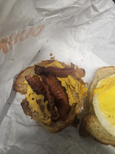 I ordered a bacon, egg, and cheese croissant through the drive-thru. When I got it, the croissant and the bacon were burnt! Also, there was hardly any bacon on it. It looked like crumbs. Unfortunately, I didn't take a picture of it. I went inside and asked if it could be remade with more bacon. The guy at the register said coldly, 'We can remake it, but you only get 2 pieces of bacon.' I asked him to just remake it without it being burnt. When I got it, the bacon was still burnt around the edges. I will NEVER order another...