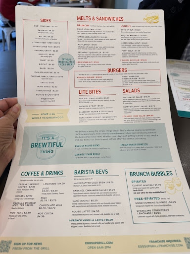 *Reason why we made this our date place * I have been to Eggs Up twice and simply love everything about it. The atmosphere is fun -- perfect for waking up. I think the playlist needs to be publicized each month because it's always perfect; I love each next song. Brent is an excellent server. He knew just what to recommend even when I knew the crabcakes were going to be mine! I do wish they'd ask if you want regular or dark roast when you order coffee. It took me a minute to figure that out. But, everything is delicious, service is great, and the atmosphere is the perfect way to wake up.
