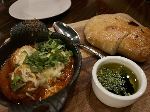 Appetizers was such a tough call. Every single item sounded so delicious. We decided on the meatballs and the bread with black garlic and EVOO. The meatballs were the best I have ever had. They were soft and full of flavor and covered in a homemade marinara. The balance of the sweetness in the sauce was perfect, which is hard to do in a restaurant setting. I find sauces from restaurants too sweet. If Hansel and Gretel were real they would prefer a house made of these meatballs every day! The bread was spectacular. I bake my own bread at home and I was so impressed with the bread. It had the texture and floof of a standard bread loaf but the flavor of a ciabatta. Glazed with butter and topped with flakey sea salt it was absolutely perfect, dipping it in their olive oil with black garlic was out of this world for my taste buds. They may never move on and accept my standard bread recipe now that they had that.