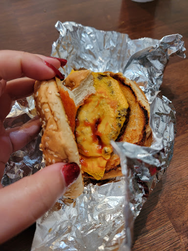 We ordered our burgers and a regular fry. The cashier offered hot sauce as a condiment, oddly... my bf took note. While we were waiting, my boyfriend wondered aloud about the hot sauce offer. It struck him that the guy went out of his way. So, when they called our number, bf asked for hot sauce and ketchup to go. We got home and noticed they gave us TWO hot sauce cups, but only ONE ketchup. I jokingly said, “maybe it’s bomb hot sauce.” :) :) :)