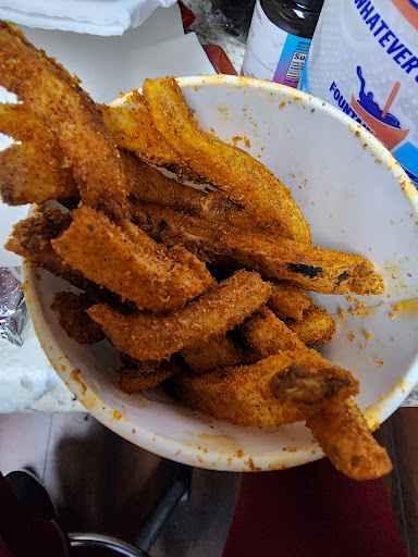 The fries are well seasoned and delicious. They're not crispy fries, but for some reason they're really good.