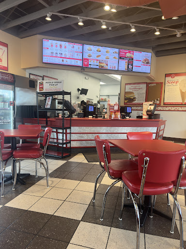 This was our first time at Freddy’s. I’d downloaded the app, and wanted to use the coupon with the ad they had on the windows: Download the add and get either a free cheeseburger or free cement. But the coupon didn’t come. Figuring I’d use the coupon for the dessert, we were seated, eating, having a wonderful lunch. The restaurant is very clean! The staff was pleasant and made the atmosphere upbeat and very much felt like I was being served a meal at their house.