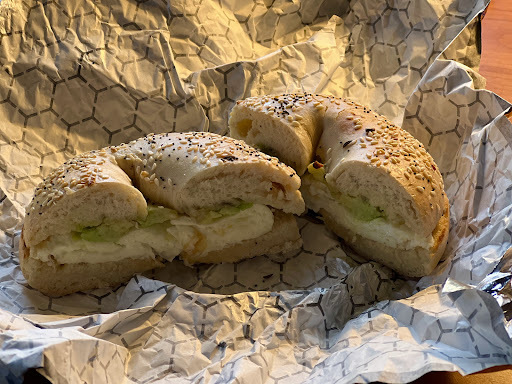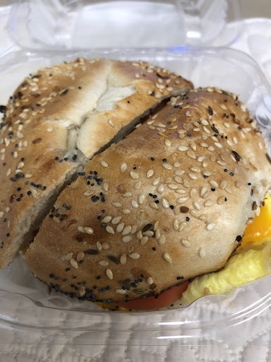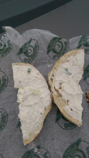 A very tall employee at the bagel counter missed the food runner he was aiming at, and the tomato slice flew through the air, landed next to my foot, and some got on my shoe. That's how this visit to Goldberg's started at noon today on a busy Sunday. It's packed so people must like the restaurant. I asked for an everything bagel toasted with cream cheese, then I asked if they had cream cheese with "green onions, scallions or chives." She says "chives" so I say "toasted everything bagel with chive cream cheese" As I'm waiting for my bagel, my brother in law says they're out of hazelnut coffee and also out of regular coffee, and when he pointed that out, the young lady at the cash register said it'll be ready in a minute and 34 more seconds. My bagel is taking forever so I look around and notice that none of the employees on the bagel counter side look happy. One of them is banging herself on the head hard with her hand. Strange. So I look at the receipt and notice I've been charged a little over $1.30 for the bagel, about $1.50 for cream cheese and $2.00 for flavored cream cheese. When I asked the young lady at the bagel counter who served me, she said I should mention that at the front counter when I pay and they would take it off the bill. The bagel never arrives, and I'm sick of this place, so I go to pay for my brother in law's coffee. My brother in law goes to talk to the bagel counter, and the tall tomato thrower brings over the bagel in the bag that's the size of a grocery bag and mumbles an apology about running out of bags. I pay, walk to my car and unwrap my bagel. I eat almost half of it and notice no chive flavor so I opened it up and there was 1 green onion piece the size of a head of a match. Now I'm curious. I walk back in and show the young lady at the counter the other half (picture attached) 3 tiny flakes of green and I ask her. Is this the "chive cream cheese" that I was charged extra for? She casually says "it's all mixed together and that's just the way it is" So I walk out of there KNOWING why this place is...