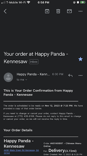 Read moreThe food was delicious, but I had my order delivered and it was 20 minutes late. I completely understand being busy, but if they’re extremely busy, they need to increase their wait time. I ordered through grub hub and was unable to track my driver because the restaurant delivers the food themselves. I tried calling the restaurant a total of 22 times before someone answered in regards to my order status. If you order from here, go pick it up yourself. I also asked the driver for my receipt and HE TOLD ME NO. After repeating myself, he handed me the receipt that was already in his hand, and shook his head at me. Food was delicious, the experience...